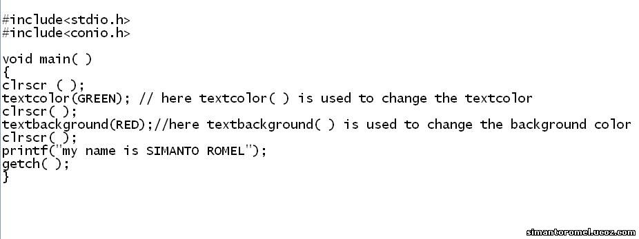 অবশ্যই নীল। কিন্তু এখন আমরা ইচ্ছে করলেই আমাদের মনের মত করে সাজাতে পারবো।কি অবাক হচ্ছেন?অবাক হবার কিছুই নেই।নিচের প্রোগ্রাম টি লিখে রান ctrl+f9 চাপুনঃ